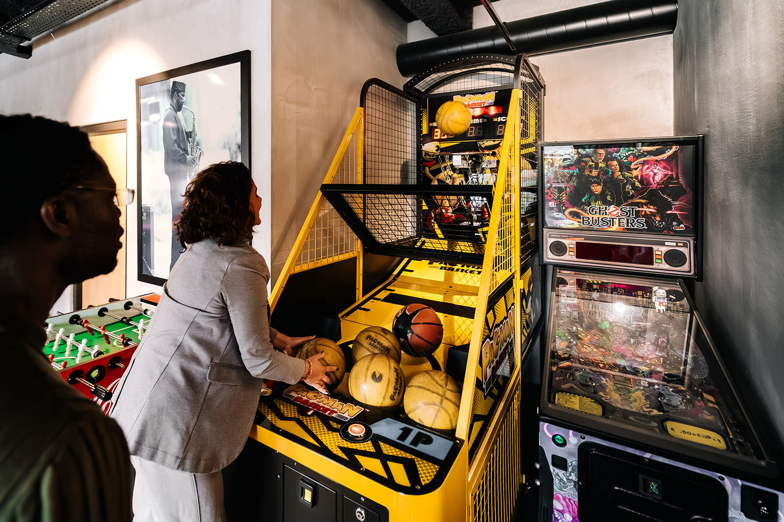 We vinden het ook belangrijk dat je bij ons kan ontspannen en inspannen, daarom hebben we een basketbalmachine, tafeltennistafel, flipperkast en onze eigen gym voor de sportfanaten en (toekomstige) krachtpatsers.